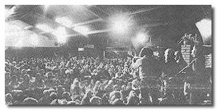 The whole place was a swarm of faces. These were the "Jesus People." Their faces radiated that inner something that could be described as an absolute "high." There was standing room only outside -- a thousand or more people jammed together in the chill ocean air, shoulder to shoulder. The chapel (which seats 1,000) was completely encircled with people sitting and standing both inside and out. These were the "street Christians." Their love and zeal was clearly showing. Their conversation was punctuated with "Praise the Lord !"